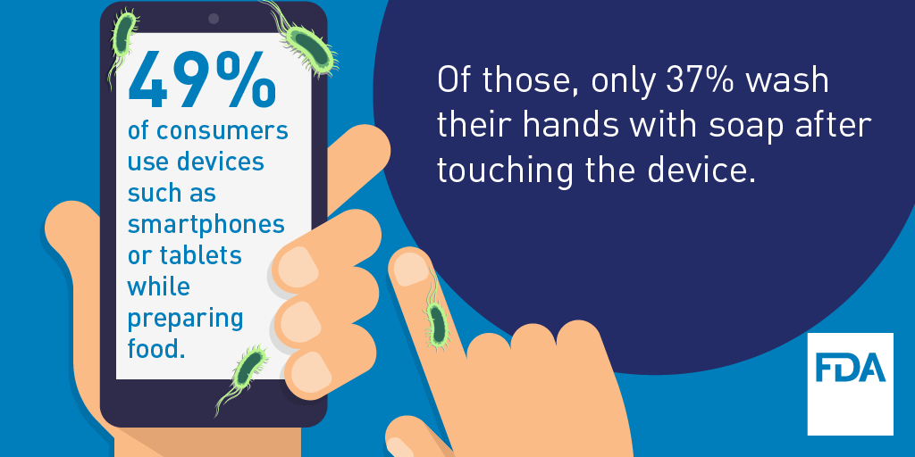 Lando: This issue surfaced when we were working with colleagues at the U.S. Department of Agriculture (USDA) on the questions for the 2016 Food Safety Survey (FSS), which FDA conducts in collaboration with USDA. As you know, smartphones, tablets, and other devices have become ubiquitous in our daily lives. We take them everywhere—work, the store, the bathroom, the gym, and many other places. It makes perfect sense to use them in the kitchen, and people are increasingly doing that. Why have 50 cookbooks when you can just look at your phone?